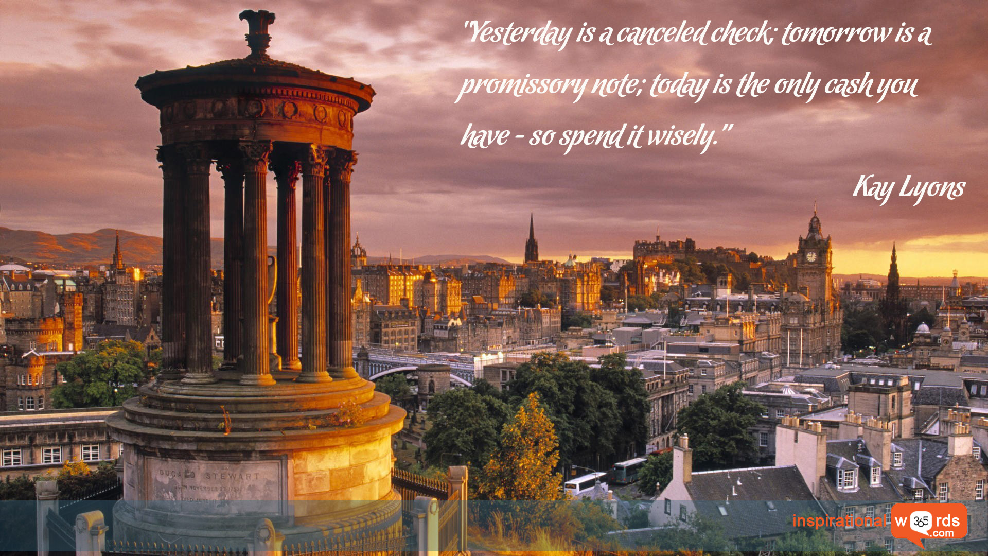 “Yesterday is a canceled check; tomorrow is a promissory note; today is the only cash you have – so spend it wisely.”