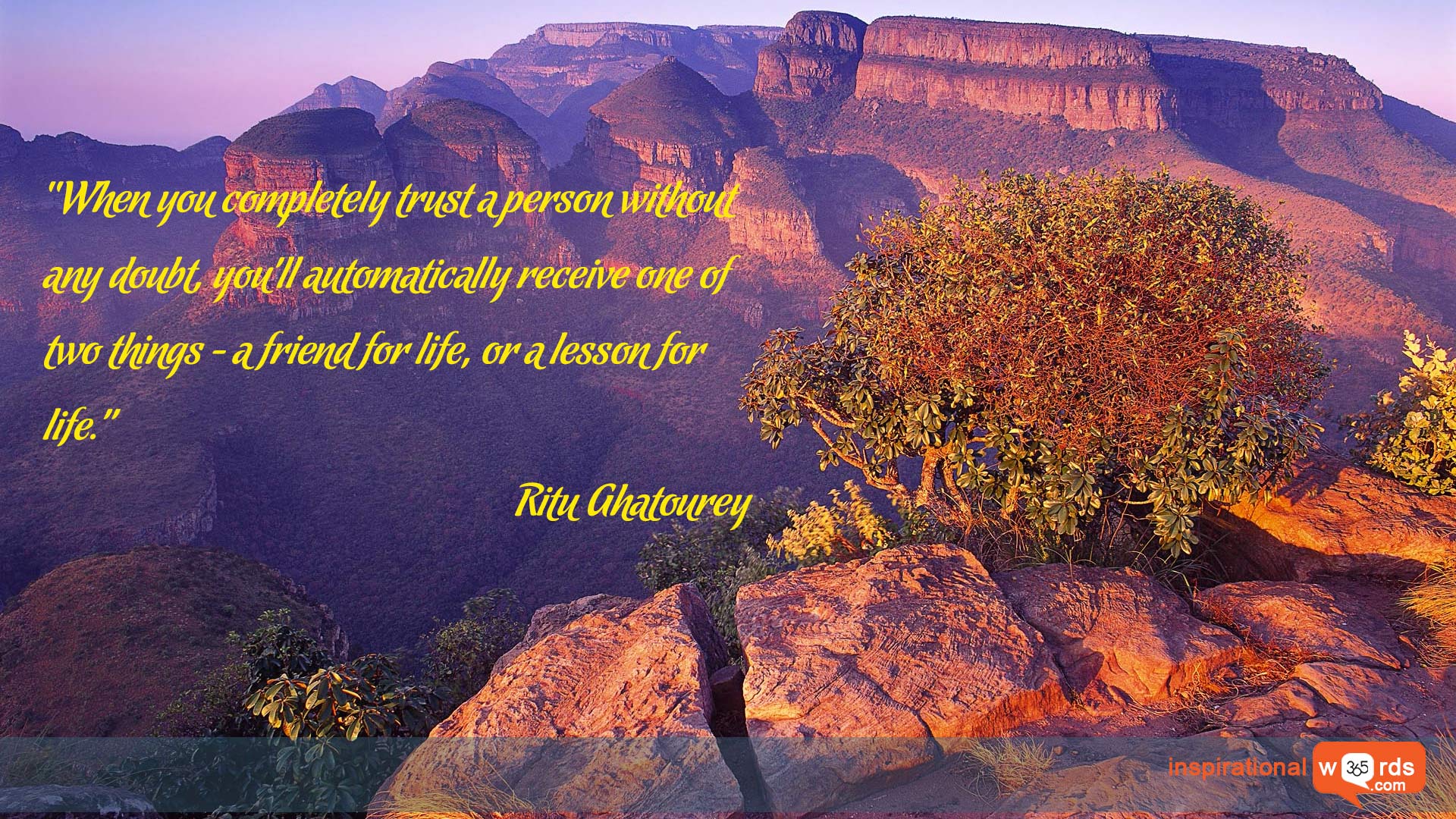 “When you completely trust a person without any doubt, you’ll automatically receive one of two things – a friend for life, or a lesson for life.”
