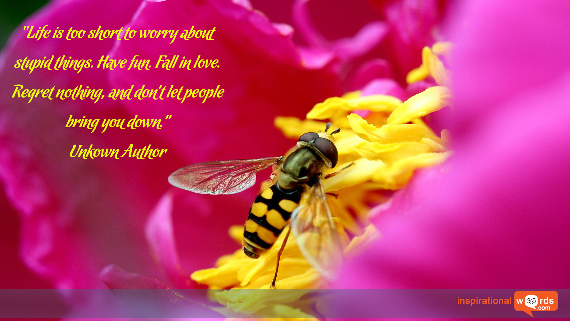 “Life is too short to worry about stupid things. Have fun. Fall in love. Regret nothing, and don’t let people bring you down.”