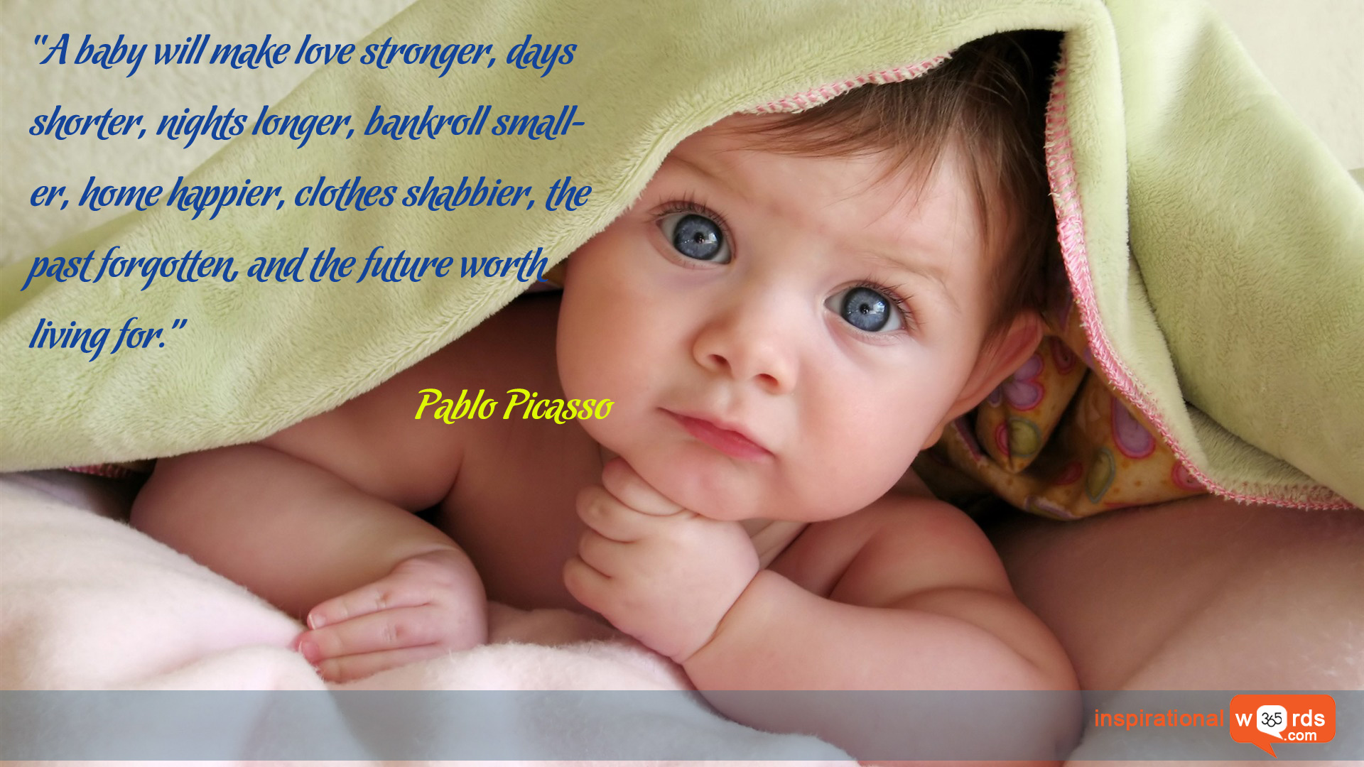 “A baby will make love stronger, days shorter, nights longer, bankroll smaller, home happier, clothes shabbier, the past forgotten, and the future worth living for.”