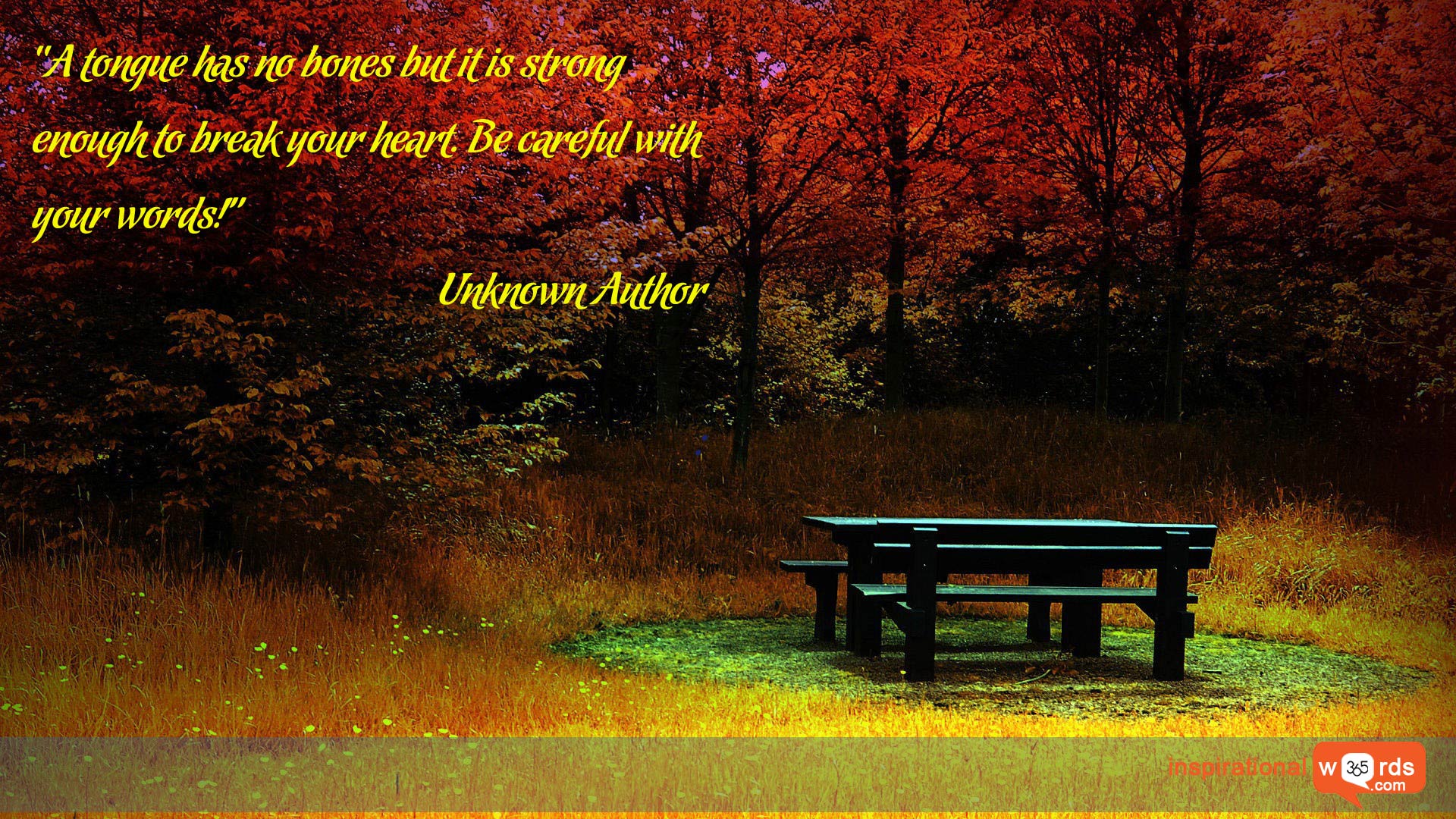“A tongue has no bones but it is strong enough to break your heart. Be careful with your words!”
